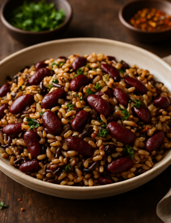 A cozy, hearty quinoa bowl loaded with creamy cannellini beans, sautéed bell peppers, and fragrant garlic and onion — perfect …