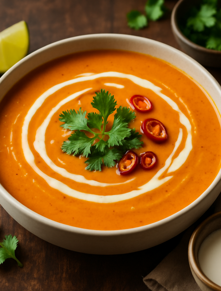 A warming and vibrant soup combining tender butternut squash with spicy red curry, smoky paprika, and creamy coconut milk for a deliciously satisfying Thai-inspired meal.