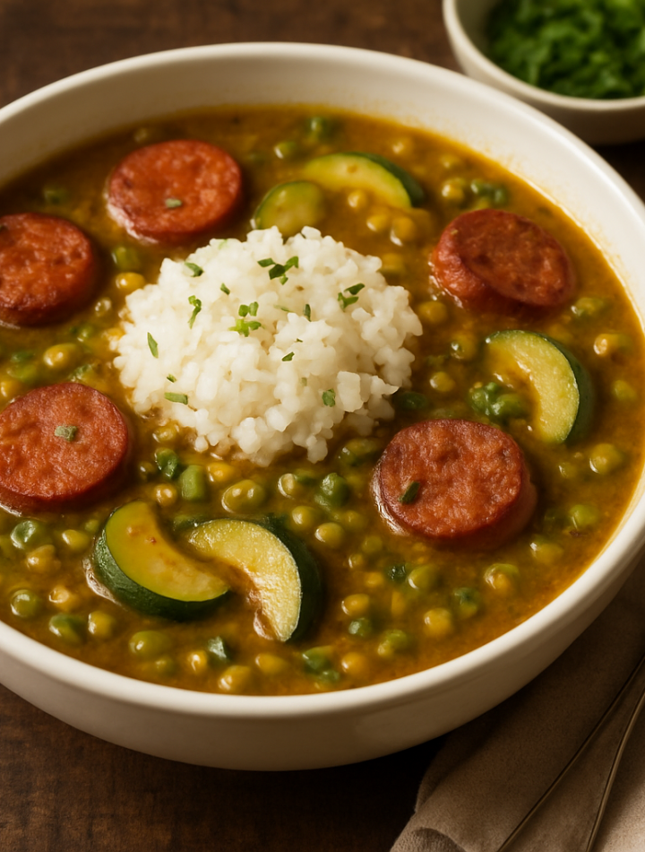 Hearty Faux Gumbo with Spicy Andouille and Split Peas