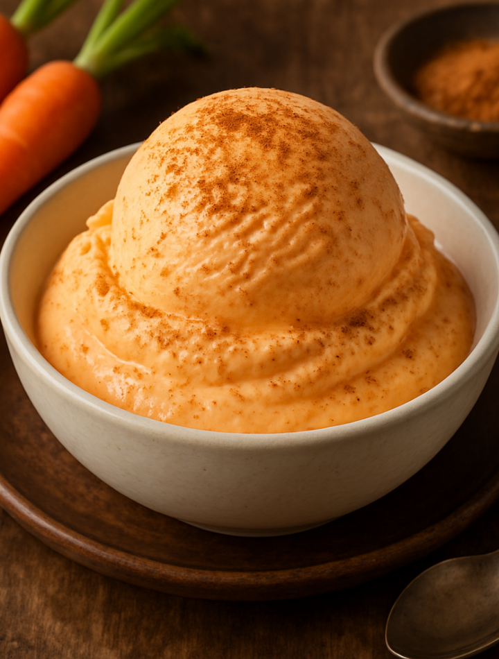 A smooth and sweet blend of tender cooked carrots and creamy vanilla ice cream, creating a unique and refreshing treat.