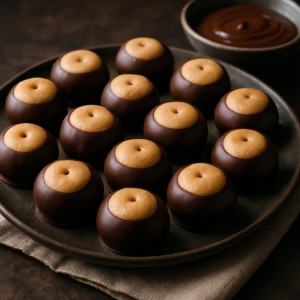 Sweet and nutty peanut butter balls dipped in rich chocolate, leaving a small circle of peanut butter exposed for that iconic buckeye look.