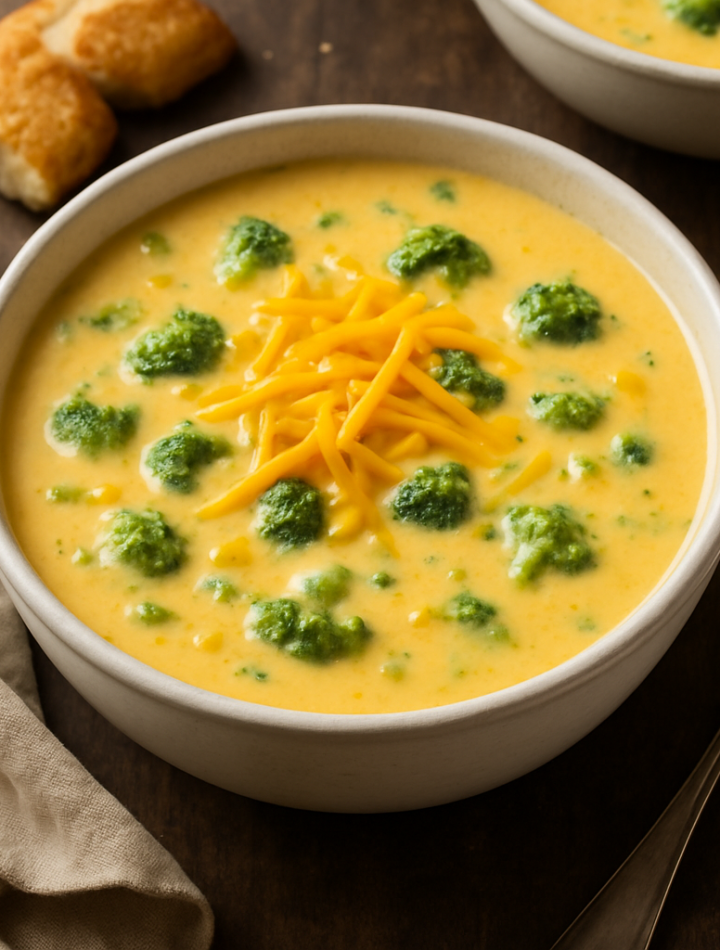• Serve hot and enjoy your creamy broccoli and cheese soup!