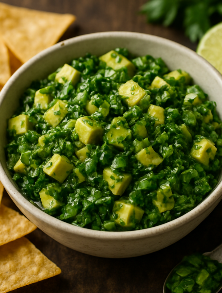A fresh and vibrant salsa combining fragrant herbs, spicy jalapeño, and creamy avocado—perfect as a dip or topping for grilled dishes.